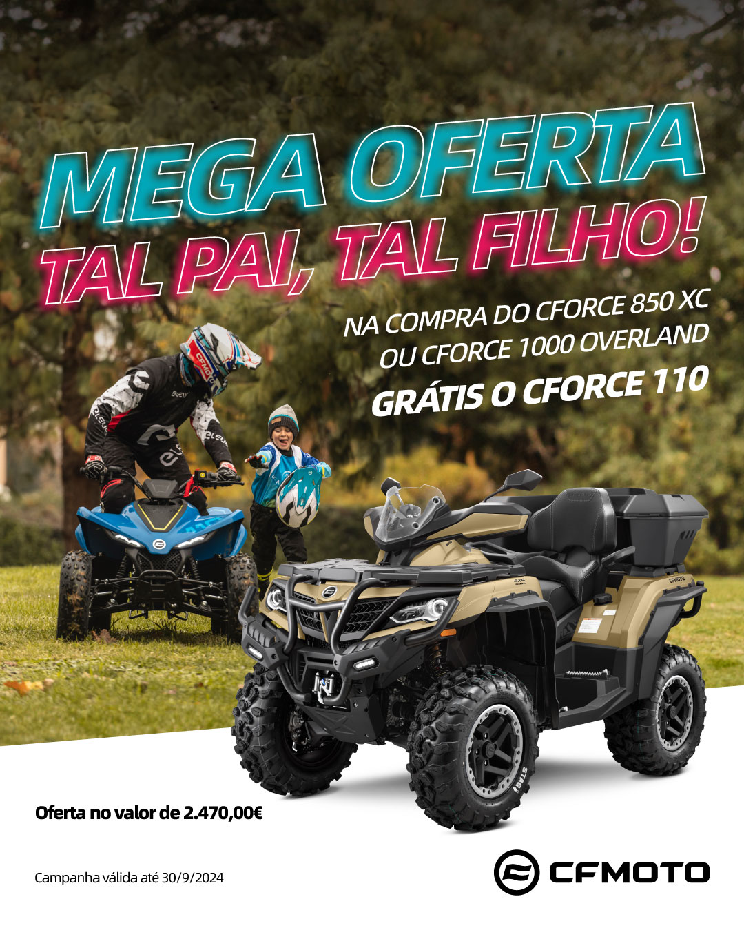 Na compra de um CFORCE 850 XC (PVP: 11.490,00€) ou CFORCE 1000 Overland (PVP: 13.490,00€), os clientes receberão como brinde um CFORCE 110, no valor de 2.470€, limitado ao stock existente dos modelos em promoção.